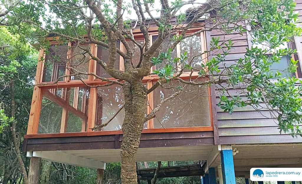 Toda en primer piso, de 110 m2 con dos decks, uno mirando al mar y otro al monte. Tres dormitorios, dos baños completos, uno en suite. Cocina, comedor, living con chimenea. Hamacas, mantas y vajilla ( traer sábanas y toallas ).