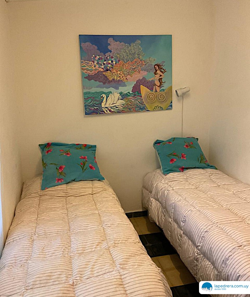 La casa cuenta con dos amplios dormitorios con cama matrimonial y un cuarto pequeño con dos camas individuales.