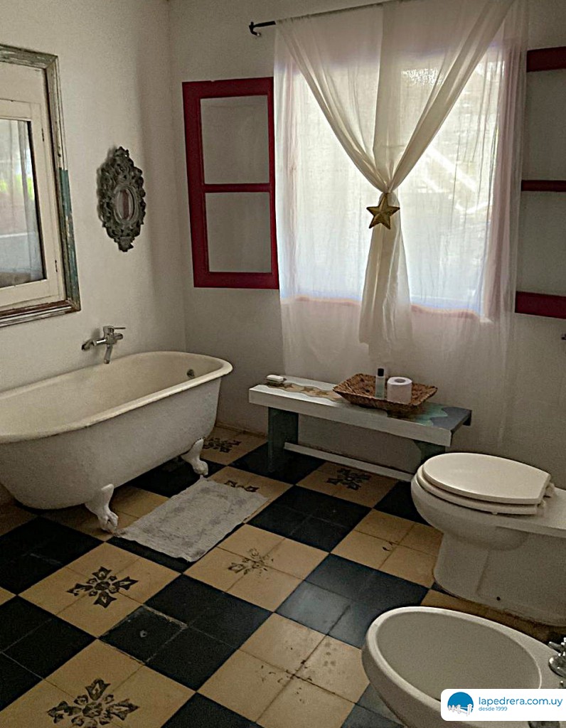 Dos baños, cocina, comedor y living y un gran deck techado hacia el jardín interno, armado también para living, a su vez desde este jardín y a través de una escalera se accede a otro deck en la terraza que tiene un cubículo cubierto, para ver el mar, tomar mate etc.