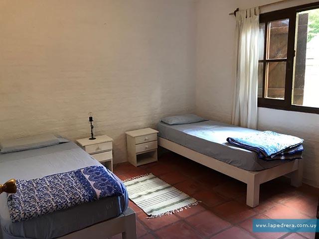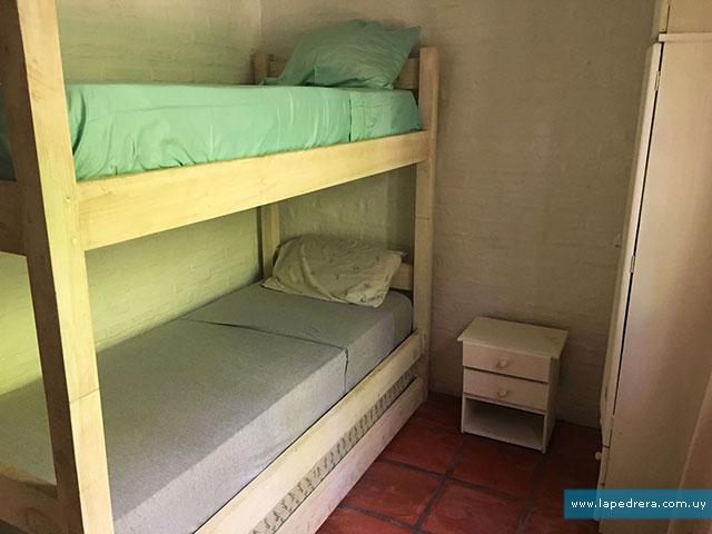 En planta baja hay un baño social completo y dos dormitorios. Uno de los cuartos tiene dos camas y el otro una cucheta con marinera. Todos los dormitorios tienen placares con ropa de abrigo (mantas y/o acolchados), y un closet que dispone de sombrilla, dos reposeras para playa y dos perezosos. El dormitorio principal es amplio y tiene baño en suite con bañera, mesada y espejo. Cuenta con un amplio y excelente balcón de uso exclusivo.