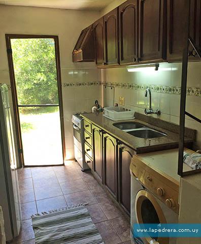 Cómoda casa en zona residencial totalmente arbolada. Living con estufa a leña y amplios ventanales que ofrecen buena iluminación e integración hacia un jardín de 800 m2. Cuenta con cómodos sillones y hamaca de mimbre. La cocina tiene placares y mesadas a ambos lados y está equipada con lavarropas, microondas, heladera con freezer, cafetera. Comedor con puerta ventana que da al parrillero con pérgola.