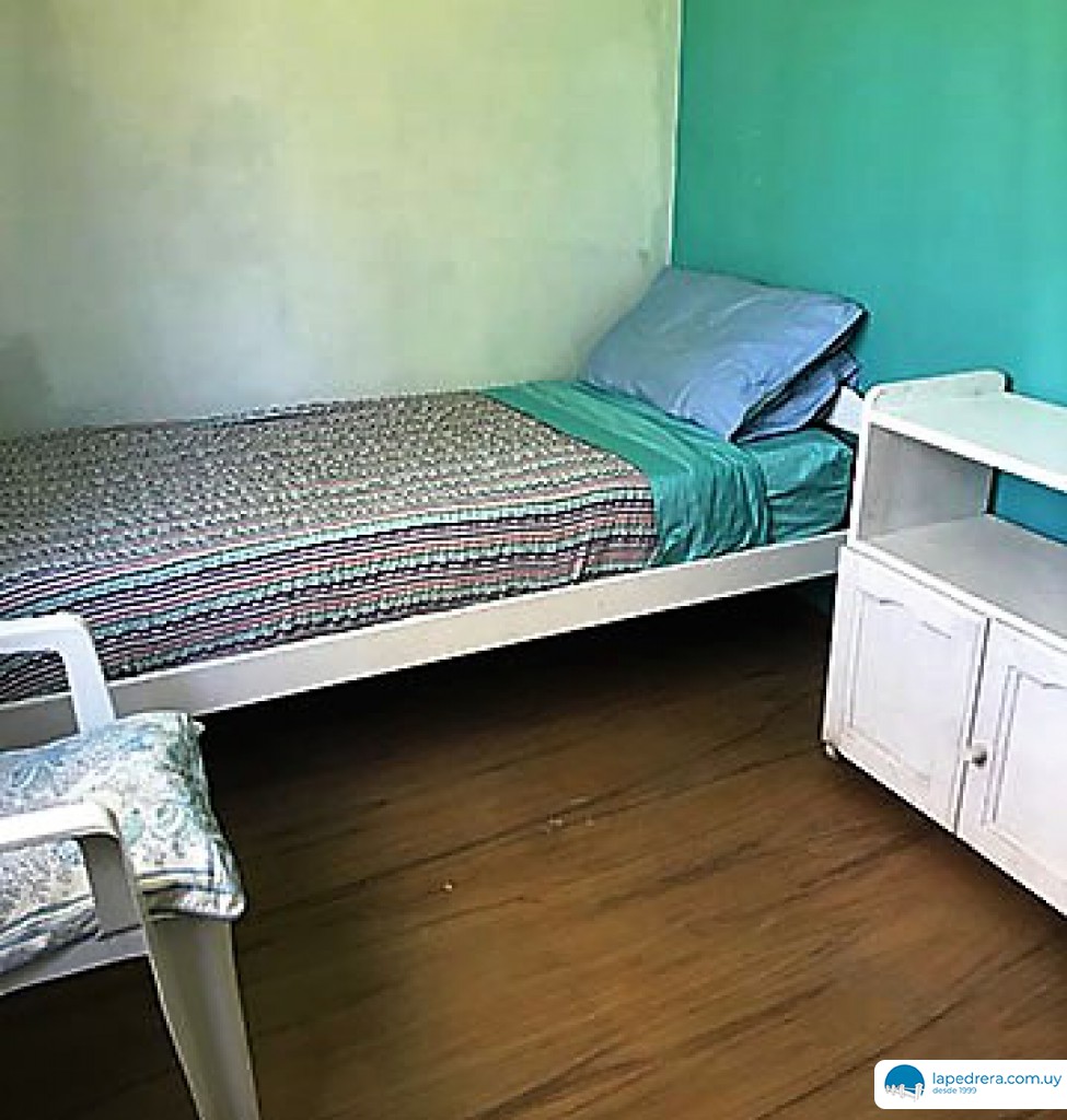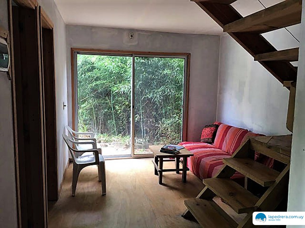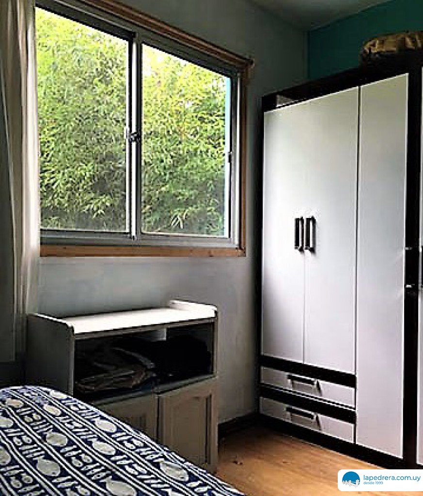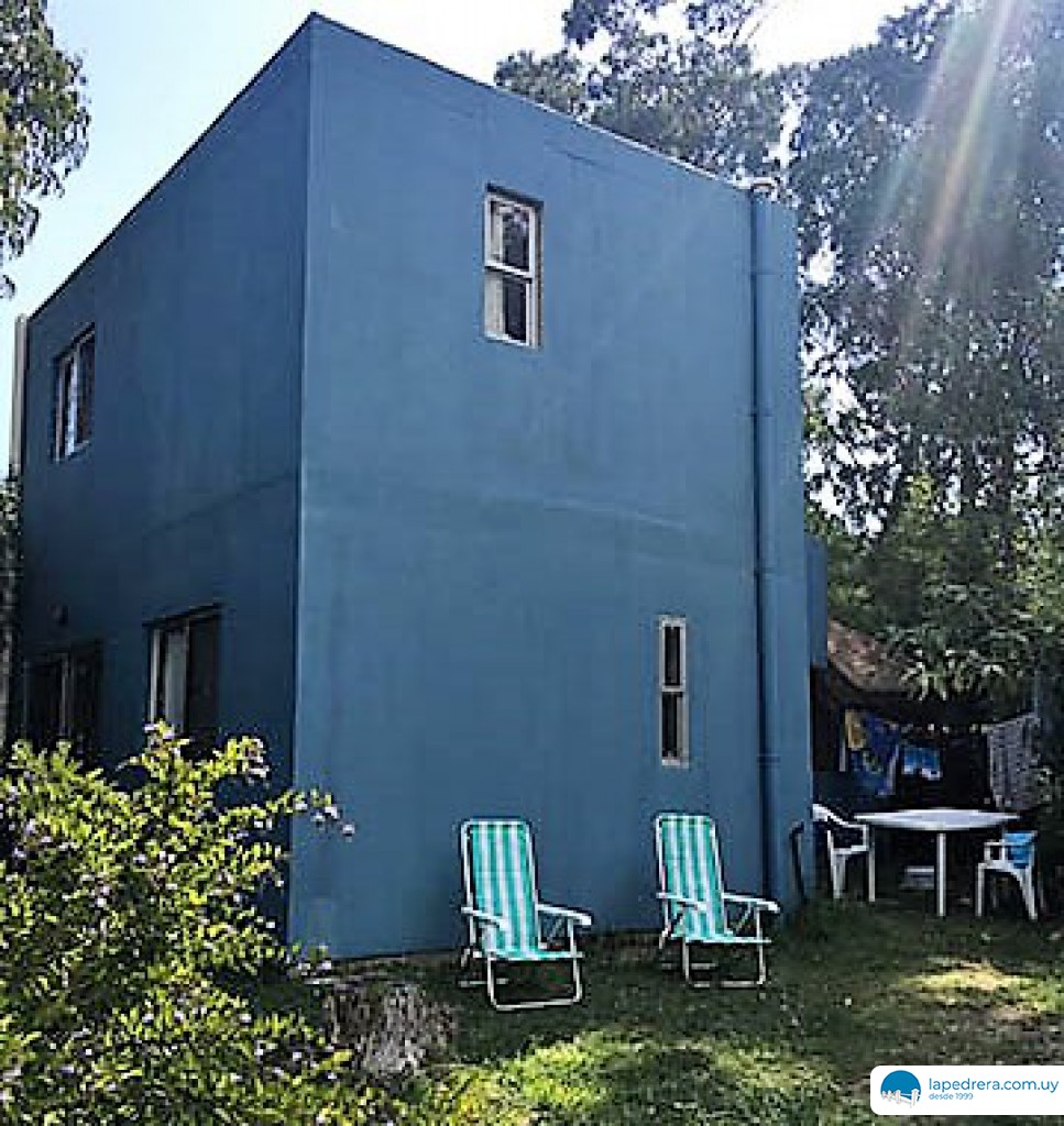 En la zona arbolada de La Pedrera, cómoda casa de 60m2 y dos pisos. En la planta baja está la cocina con barbacoa incluida y comedor, baño y un dormitorio. En planta alta hay dos dormitorios.