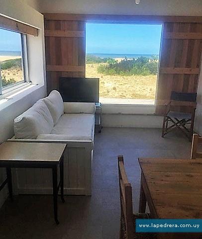con living, comedor y cocina integrados. Bien equipada con lavarropa y wifi. Deck con parrillero. Ideal para cuatro